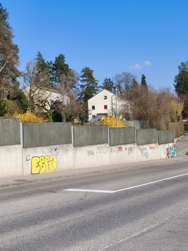 Nicht einladend: Entlang der ganzen Hauptstrasse zieht sich eine Mauer voller Graffiti. In der Stadt gibt es auch Putzarbeiten, die von der Gemeinde unbeachtet bleiben. Schade für eine sonst schöne und hübsch gelegene Gemeinde.