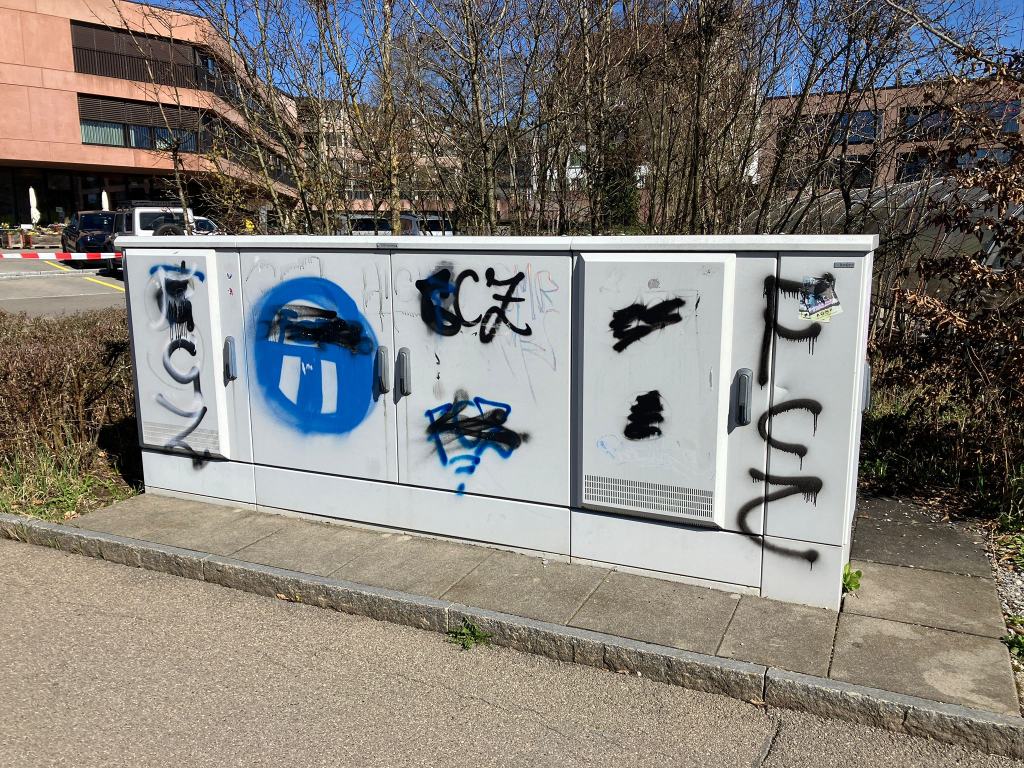 Auch das hübsche Pfäffikon ZH wurde von linksautonomen Hooligans des FCZ verschmiert. Jedes Graffiti stammt von diesen Hooligans, die mehrheitlich auch linksextreme Hausbesetzer sind. Offensichtlich haben sie nichts Besseres zu tun, als mit der Spraydose in der einen und einem Bier in der anderen Hand Hausfassaden zu besprayen und Radau zu machen.